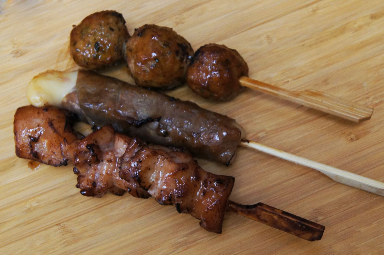 3 brochettes au choix (poulet, boulette, bœuf fromage)