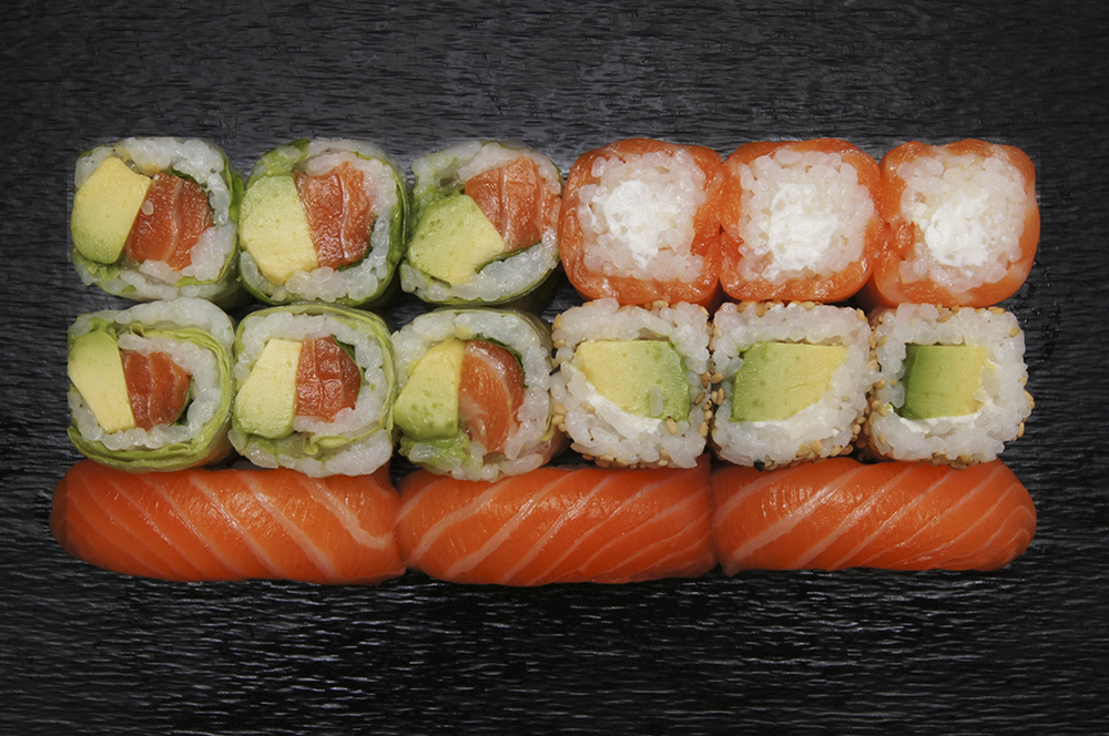 3p Saumon roll, 3p flocon avocat fromage, 6p green saumon, 3p sushi saumon