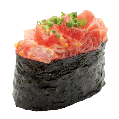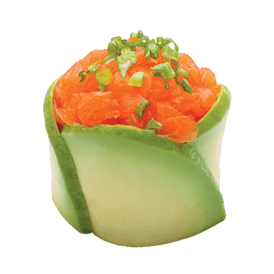 Riz, nori, tartare saumon, mayonnaise spicy, sauce soja, huile de sésame, ciboulette
